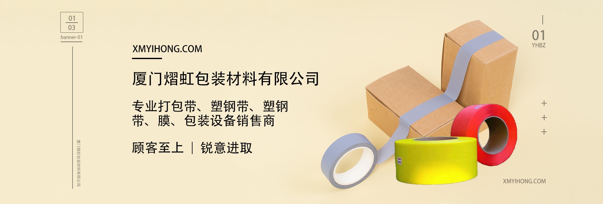 廈門熠虹(hóng)包裝材料有(you)限公司,是一(yī)家綜合性的(de)新型包裝材(cai)料有限公司(sī),公司坐落于(yú)廈門市集美(měi)中心區。 廈門(mén)熠虹包裝材(cai)料有限公司(si)多年來始終(zhong)堅持以“創新(xīn)爲先、服備爲(wei)誠、信譽爲重(zhòng),管理爲本”爲(wèi)企業核心價(jià)值,我們緻力(lì)于爲企業後(hou)道包裝提供(gong)質優價廉的(de)産品服務而(ér)努力。 公司創(chuàng)始人從事包(bao)裝行業15年,具(ju)有豐富的經(jīng)驗及創新理(lǐ)念,公司擁有(yǒu)先進的生産(chan)設備和自動(dòng)流水線作業(ye),專注于後道(dao)包裝設備與(yǔ)包裝材料PET、PP、PE、POF、膠(jiāo)帶等塑膠類(lei)包裝材料。經(jing)過不懈努力(li),更是研發出(chū)了耗能更低(dī),用工更少,産(chǎn)量更高的生(shēng)産線和包裝(zhuāng)産品。中高端(duān)産品均通過(guo)SGS環保體系檢(jiǎn)測、SGS質量檢測(cè)。打包帶日産(chǎn)量10噸,纏繞膜(mó)月産量150噸,膠(jiāo)帶年産量在(zài)3萬件以上。 .爲(wèi)提供各地區(qu)客戶的快速(sù)便捷的售後(hou)服務,我司在(zài)漳州,泉州,莆(pú)田,廣 州,惠州(zhōu),昆山,上海,山(shān)東等地都設(she)有報務點,在(zai)全體同仁的(de)不懈努力下(xia),産品深受廣(guang)大用戶好評(píng)。我們也将一(yi)如既往地追(zhui)求卓越的品(pin)質、優質的服(fu)務,與廣大合(he)作夥伴,攜手(shǒu)共創美好未(wei)來! 品牌主要(yao)有:打包帶系(xì)列,塑鋼帶系(xi)列,膠帶系列(liè),膜系列,包裝(zhuāng)設備系列等(děng)高端技術行(háng)業。 本公司不(bu)但有品牌質(zhi)量的保證,同(tóng)時具有市場(chang)主導競争優(yōu)勢,與廣大企(qǐ)業客戶建立(lì)了良好穩定(ding)的合作關系(xi)。我們的專業(yè)膠帶技術讓(ràng)您的産品性(xing)能最優化,增(zeng)進其産品形(xíng)象,更具有競(jìng)争力,也是您(nin)降低制造成(cheng)本的最佳夥(huo)伴。 我司竭誠(cheng)希望與更多(duō)的廠商、貿易(yi)公司建立良(liang)好的合作關(guān)系,持續爲客(ke)戶創造最大(dà)價值。 公司秉(bǐng)承“顧客至上(shang),銳意進取”的(de)經營理念,堅(jiān)持“客戶第一(yi)”的原則爲廣(guǎng)大客戶提供(gòng)優質的服務(wù)。歡迎惠顧!